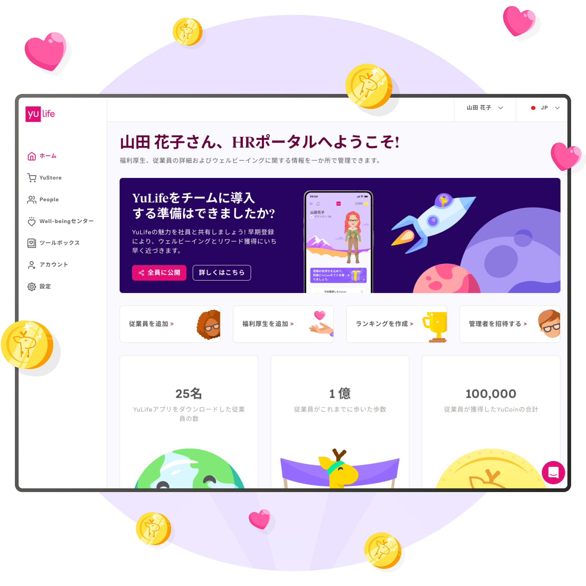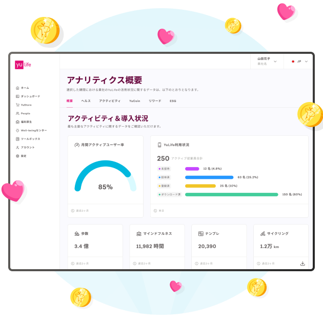 A: YuLifeは、健康サポートに加え、従業員のやる気やチームワークを高めるための戦略的なツールです。リモートワーク環境でも、従業員同士のつながりを強化し、働きやすい環境づくりに大いに役立ちます。