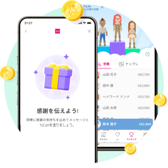 A: YuLifeは、ウォーキングやエクササイズ、マインドフルネスといった健康活動をリワード制度を通して楽しく促進するアプリです。歩数やチャレンジに参加したり、同僚と競い合ったりすることで貯まったアプリ内通貨「YuCoin」は、お好きなブランドのクーポンと交換したり、寄付や植林などの社会貢献にも活用できます。